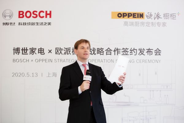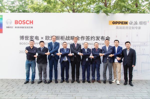 2020年5月13日,全球领先的家电制造商之一博世家电与定制橱柜领导品牌欧派橱柜在上海签署战略合作协议。双方宣布将通过全系列产品深度合作为消费者提供全新的一站式厨房购物新体验及更高品质的厨房生活;以高科技创新型家电产品与顶级橱柜设计的有机融合,进一步满足高端消费者对厨电、橱柜一体化的需求,全力打造现代厨房典范。此次双方战略合作的达成,将为高端整体厨房产业树立新标杆,推动中国厨房行业创新发展。