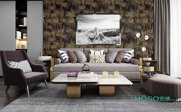 【宏绣】墙布沙发背景墙 最美不过新中式