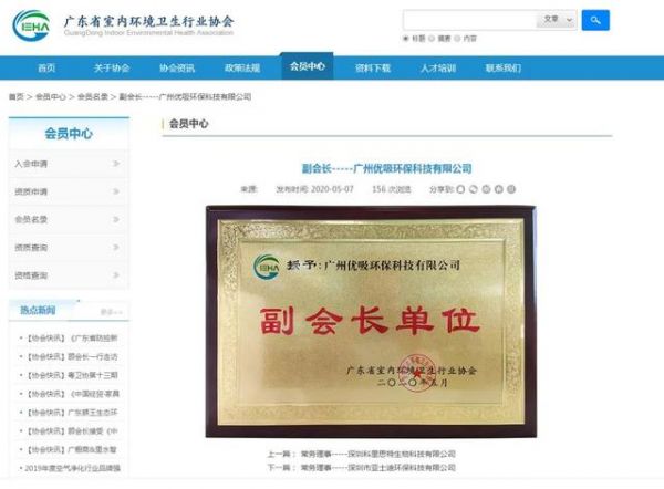 近日,广东省室内环境卫生行业协会为我们传来佳讯,我公司顺利通过广东省室内环境卫生行业协会的评审表决,正式成为广东省室内环境卫生行业协会副会长单位。成功加入广东省室内环境卫生行业协会,标志着我公司在室内空气净化行业再次迈向了新台阶!
