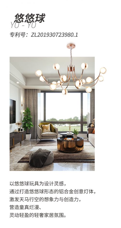 除核心技术创新外,在“看得见的创新上”,华艺也始终保持对原创设计的思考,以实现品牌的差异化发展,提升品牌的价值。为此,华艺立足市场需求与品牌定位,相继推出了一系列具有原创外观专利的灯饰产品,满足日益个性化、品质化的消费需求。目前,华艺专利申请总数累计达549多项,其中外观专利457多项,华艺成为拥有真正设计实力和个性化国家专利产品的灯都龙头品牌。