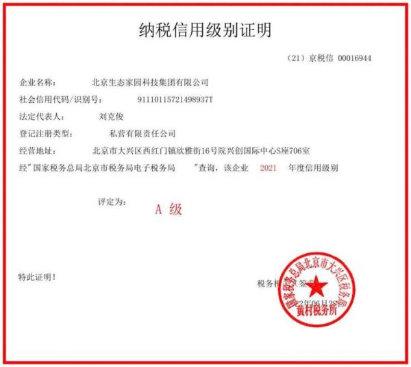在新年度的纳税评定中,生态家园集团再次荣获2021年度信用A级纳税企业,这是生态家园连续6年荣获信用A级纳税企业。