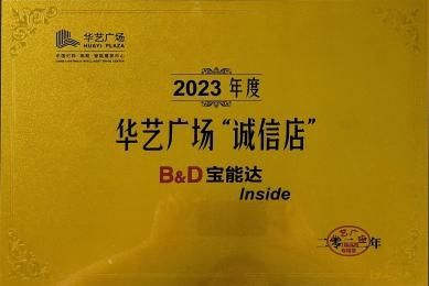 2023年5月21日宝能达照明获得华艺广场颁发的三个奖牌,分别是“诚信店”“最1受欢迎商照品牌”“光筑年度先锋奖"。