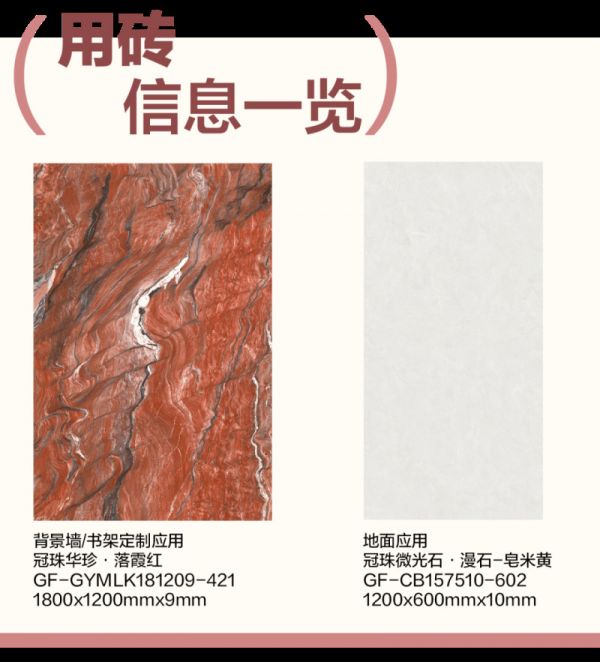 这次结合冠珠华珍岩板和冠珠瓷砖微光石系列两款产品的应用,让空间看起来更加有层次和丰富,打破常规,又能创造出独特的视觉享受。希望大家不要畏惧色彩的搭配,可以大胆和自信的去运用颜色。