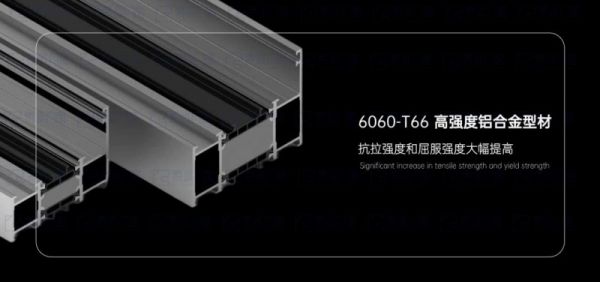 素派门窗采用高强度6060-T6原生铝型材,比市面常用的6063-T5型材在抗拉强度和屈服强度方面分别提高了29%和22.7%,极大地保障了门窗整体的安全性与抵抗风雨能力。