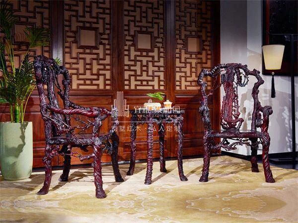 泰和园以“私人定制”为特色,擅长“丝翎檀雕”技法。其《梅兰竹菊》系列紫檀家具,精选优质木料,赋予家具独特的艺术性与生命力。