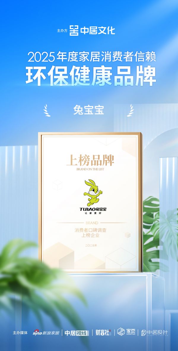 喜报!兔宝宝荣获“2025家居消费者口碑榜”销量领先、环保健康两大殊荣
