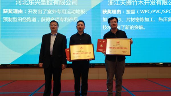 中国建筑装饰装修材料协会副会长、中国建筑装饰装修材料协会弹性地板分会执行会长施茂清为弹性地板科技创新优秀企业颁奖。