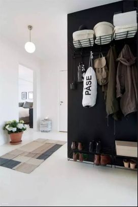 玄关墙面设计初级篇:隔板+挂钩+挂杆,收纳空间up up!