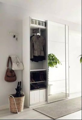 衣柜放在玄关,能给卧室省出很多空间,移门上还有大大的镜子,不仅方便主人出门前整理装束,还可以扩大视觉空间。