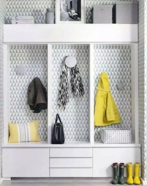 玄关墙面设计高级篇:衣柜+鞋柜+穿鞋椅 玄关秒变小型衣帽间!