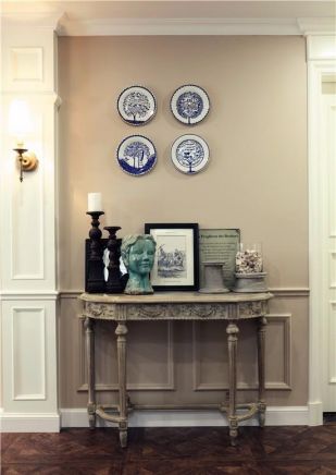 如果你家够大,希望玄关也能营造出艺术氛围,那碟子墙饰+烛台+装饰物就可以把玄关做的文艺范十足。