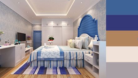 白色属于百搭色,而且在家装设计中运用得最多,但你不妨添加一种或是两种其他颜色。如蓝色就是很适合年轻人的时尚颜色,整体风格带有一种地中海味道,似乎打开窗就能闻到咸咸的海风味。