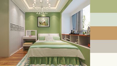 颜色过渡很重要,颜色调色太大会加重视觉负荷。房间的颜色不宜过多,就像穿衣服颜色不超过三种一样。在整体为草绿色的房间下增加一种明亮的色彩是不错的选择。