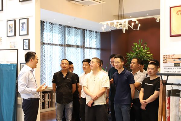 随着参观的结束,众人回到会议室进行下午的重要环节—行业交流。企业们纷纷对董红强先生的精彩分享表示感谢,并表达了墙纸墙布行业融合趋势必不可挡的想法。但也有一些墙纸企业家十分担心墙纸市场份额会持续减少,玉兰集团董事长万庆棠先生对此发表了自己的看法,其认为,越来越多品牌进入无缝墙布行业是因为从企业到经销商再到施工方的利益链条十分完整,利润比相较于墙纸行业而言更高些,但反观,若有一天墙纸的利润链条更高或者无缝墙布行业的利益链条不再比墙纸行业的高,是否墙纸行业的市场会逐步回暖?随后万庆棠先生继续补充道,现阶段越来越多的品牌进入到无缝墙布行业,这并不表示墙纸市场份额会持续被抢夺,墙纸产品具有生产效率高、良品率高的客观优势,许多家装都因考虑尽快入住等因素而选择墙纸,这也说明墙纸产品仍拥有巨大的市场。在提到整装概念时,蝴蝶夫人美学窗帘创始人杨玉海先生表达了自己的观点,其表示,以自身从事多年硬装行业而言,许多整装先例均已失败告终,但这并不表示整装一定不可以,但是作为将整装作为未来发展方向的企业而言,最重要的是要拥有自己的主力产品从而带动配套产品,其引用许多例子,向在场嘉宾形象而生动的讲述了自己的观点与想法。在交流会接近尾声时,首次加入互访团的金佰利窗帘董事长鲁金州先生进行发言,并表达了对于无缝墙布行业未来十分看好的观点,其认为,布天生具有温度,使消费者更容易产生亲切感,同时由于无缝墙布拥有防火、防潮等物理属性,使其拥有民用价值和商业价值;对于第一次参加行业交流活动,他认为该活动推动了墙纸墙布乃至窗帘行业的融合,为各企业搭建了良好的沟通交流平台,使其看到了行业的未来。