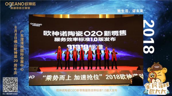 随着新一代信息技术的普及与渗透,欧神诺不惜投入巨资,自主研发大云商营运体系,并率先在业内牵起了互联网+的变革,开创富有欧神诺特色的瓷砖O2O零售新模式。2018年3月,欧神诺发布建陶行业首个新零售服务内容标准1.0与五大服务效率标准“31319服务效率标准”,从执行内容及执行效率上,双管齐下进行明确与规范。“31319服务效率标准”意味着,欧神诺已迈入了瓷砖定制标准化时代,彻底踏上了从传统制造迈向智慧创造的新征程。