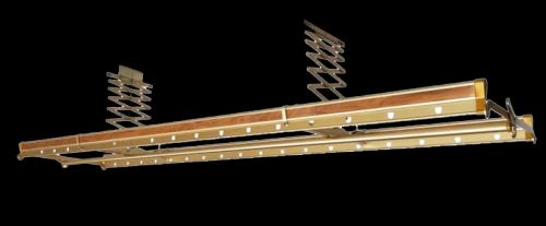 晾衣杆与主机之间采用独创连接结构,主机安装在吊顶扣板之上,安装效果更美观;另可自由选配两条可伸缩杆,增大晾衣空间。