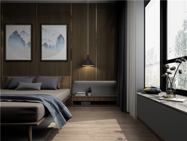 禅意卧室的色系一定是自然柔和的,可选择深浅有致的方式来表现层次感,但需要注意在视觉上保持连续性,墙壁、家具和地板之间的色彩跨度不能过大,过渡要自然。另一方面,禅意卧室应把装饰做到尽可能的精简,要保持一个简单的外观,杂乱无用的小东西需要适当舍弃,禅意、素净空灵的感觉才会凸显出来。装饰可选择水墨山水画,传统水墨与现代元素交融,既体现儒雅现代又增添东方禅意。