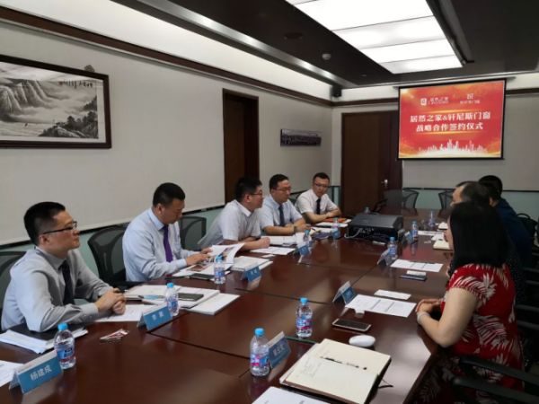 2018年8月3日,轩尼斯门窗董事长曾庆伟先生携高管团队一行拜访北京居然之家集团总部,进行全面合作战略交流会,双方在招商、营销等方面进行深入沟通交流,并与居然之家集团签订战略合作协议,使轩尼斯在门窗行业中率先成为居然之家战略合作关系的企业。