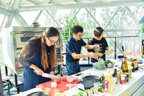 本场活动的重点便是嘉宾们制作美食,他们一起动手参与,从中获得快乐。他们认真体会着美食制作过程的乐趣,一起聊对于理想生活的向往。来自蔚蓝海岸农场的纯天然的时蔬、海鲜、甜品、水果在各位嘉宾的巧手之下变成一道道美味佳肴,诠释着一种健康的生活状态。