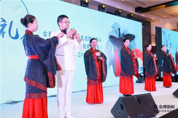 华英雄:你看中国四相当中,吃有吃相,站有站相,坐有坐相,睡有睡相,如果这些都能完美地结合在一起,那么我们中国的国民素养会提升多少。金牌厨柜从厨房礼仪入手,让衣食住行结合在一起,非常有意义。上海很流行的一句话,最高级的宴请是“家宴”,那是贵宾级待遇。请客人来到家里做客,要阐述一下,为什么不去饭店,这个理由说出来可以让客人怦然心动。第一,我想自己做几个菜,这种理由多温馨。第二,我家里有一款存了35年的茅台,刚刚朋友送我的一瓶法国拉菲,这种说法客人无法拒绝,虽然花费不多,但是给人的感觉就是家的感觉。所以我认为现在世界上非常人性化的一个趋向就是更加强调“服务概念”,待客之道,把中国的儒家思想的深度都挖掘起来了。我还是感谢金牌厨柜邀请我来参加今天的这个活动,提供这么好的舞台,让我把中国的传统文化再进一步传扬下去的机会。