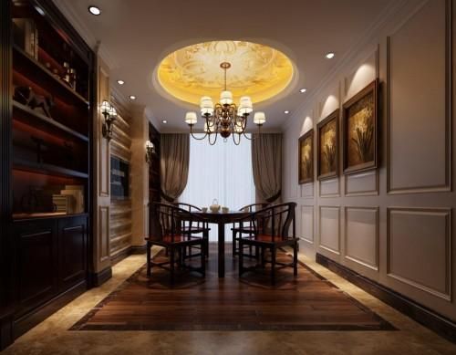 来到茶室,其中的古典气息更浓烈些,精致的红木橱柜,优美的油墨挂画,欧式典雅的挂灯,几盏绿意沁人的清茶还有桌椅的简洁线条,悄然无声地诠释了耕云装饰设计师眼中的新中式之美。