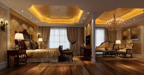 卧室宽敞大气,华而不艳,错乱有秩的台灯体贴着每一个夜归人的心。
