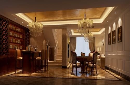沿着楼梯悠闲而下,地下室里,亦是别有洞天。简洁有序的酒柜,光线朦胧的吧台,小酌一杯的同时,耕云装饰特意添加了适合与亲朋好友共度佳日的棋牌桌。
