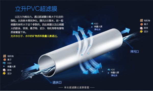 立升全屋中央净水器,采用的是立升自主研发具有专利技术的PVC合金超滤膜,立升PVC合金超滤膜的孔径高达0.01微米(仅相当于头发丝的十万分之一),可有效地过滤水中的泥沙、悬浮物、胶体、铁锈和细菌等有害杂质,同时还能保留对人体有益的微量元素和矿物质,为宝宝补充必需的“能量”,助力宝宝健康成长。