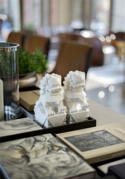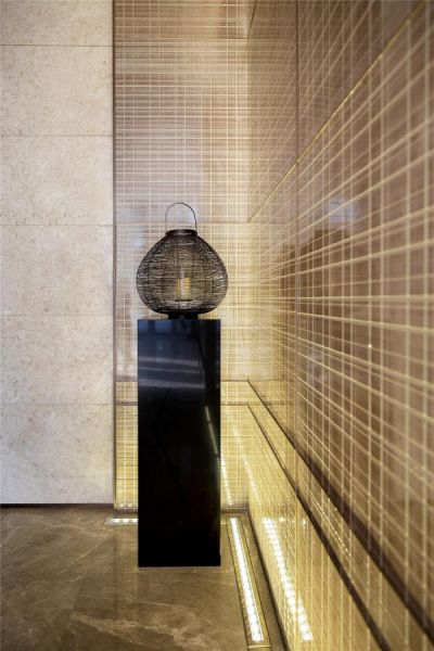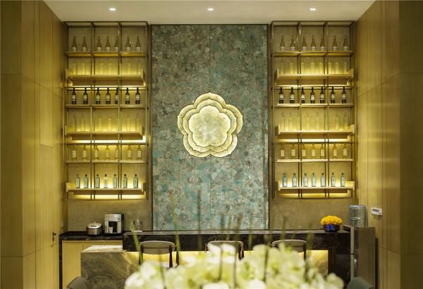 主要材料:玛瑙玉、亚马逊绿石材、古堡灰石材、橡木、拉丝青古铜