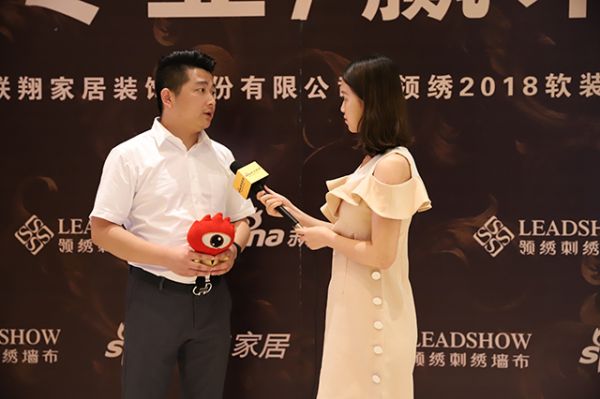 【新浪记者】:各位新浪的网友大家好,我新浪记者墙布频道记者邹雨婷,现在是在2018领绣千人软装培训会的现场,很荣幸邀请到领绣大区经理金佳峰先生接受采访,金总您好,跟我们的网友打个招呼吧。