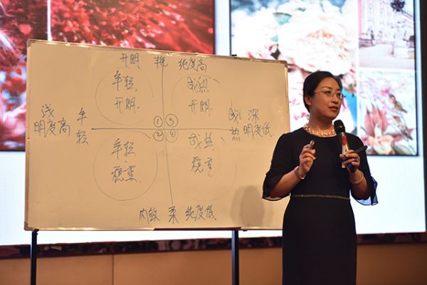 培训会由武云霞老师担任主讲,第一天的授课以理论知识为主。武老师以软装行业的起源及发展、色彩营销心理学为切入点,从风格、纹样、造型、格调等几个方面对家居软装进行了生动而详尽的讲解以及深入的剖析,其以法国古堡装修、配色风格为例,让学员了解色彩明度、纯度在家装中的选择运用;以各类风格家具、建筑、美学原则举例,告诉学员如何将理论落实到人,如何正确讲故事来满足客户的精神需求;在讲解大马士革风格图样时,以路易十四的故事和全场进行互动,调动起学员的情绪,学员们学习热情非常高涨,互动环节时纷纷上台表达自己的意见。武老师不仅在色彩上有着极深的造诣,同时在营销方面也有着非常丰富的经验,其在讲授销售技巧时着重提到,销售人员不仅要关注客户的色彩取向,还应考虑客户的生活方式,以人为本,从家装环境的整体格调出发,为其选择最合理的墙布搭配方案,“不要问客户想要什么,而是告诉客户你应该要什么”这便是销售人员所要做的事。在座学员们沉浸在武老师的课程中,并笔耕不辍记录着讲课要点,为今后的日常营销打下了扎实的理论基础。