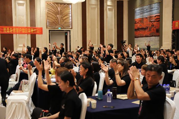 培训会持续两天,与会学员们均换上统一着装,井然有序在会场落座,座无虚席。整齐划一的衣着彰显了学员们沉稳的气质,同时也突显出领绣严谨的企业文化以及规范化、制度化的管理模式。领绣销售团队组成的天使团向众人展现高昂的士气,壮观霸气的入场更使在场的学员们提升了对于领绣品牌的自豪感和归属感。在展示过之后,全体人员举行了升国旗、唱国歌仪式。随后领绣销售副总经理陈林先生为本次培训会致辞,他对千余名学员的到来表示欢迎和感谢,并表达希望学员们通过培训能将理论付诸实践,使销售成绩不断刷新的期望。