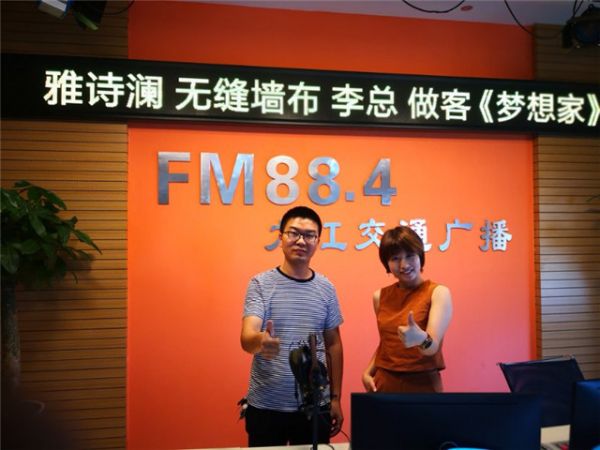 2018年8月7日,雅诗澜无缝墙布九江专卖李总,做客九江交通广播《梦想家》,与听众朋友们聊了聊背景墙装饰材质,着重普及了雅诗澜无缝墙布作为背景装饰的优势。雅诗澜专卖提供您专业的建议,实景效果图的制作,让您购物无忧。