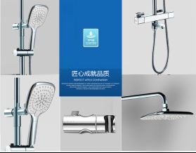 在品质上用心,更在细节之处彰显品牌实力,安华卫浴恒温花洒的几点细节,让消费者看到安华卫浴的独特:1、本体进水位贴有红蓝标识,提示安装时接冷热水路,防止冷热水装反;2、冷热进水位安装有单向阀,防止由于冷热水压力不平等时水反窜;3、安全锁键,增加水温时需按下此安全锁键才能旋转调温把手,防止儿童和老人使用时烫伤;4、防水垢阀芯,保持操作手感始终如一;5、限高温保护49度,防止使用时烫伤;6、全新温包石蜡配方,出水温度稳定,杜绝忽冷忽热。把温暖带给每一个人!