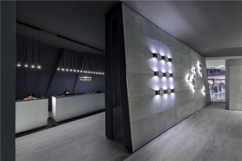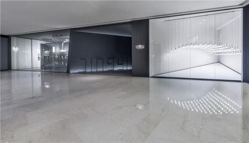 当光映射进场地,画出鬼斧神工的切线,仿佛把空间切割成不同的层次。利用光影切割这一自然艺术,设计师将空间体块进行切割,在大展厅里面打造多个充满个性、拥有利落线条的灯饰产片系列小展厅,创造空间的层次感以及穿透感。同时以光影塑造空间形体,让空间线条如同光线一样流动自如,给整个空间带来流畅自然的感觉。整个空间透露出现代简约气息,却又展现不凡的设计理念。