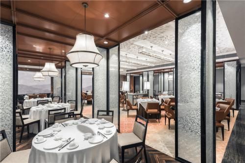 “庭院深深深几许”,无锡寄畅园步移景异之意境在中餐厅得到完美呈现。走入门庭,一列列屏风林立营造出曲折幽深的环境,让宾客自然放慢脚步,去感受、去品味。民间编织手法的玻璃屏风、相同雕刻图案的天花及水晶灯交错,创建出美妙的虚实园林意境。园林化的就餐环境,让人忍不住停下来,静静的享受这份优雅独特、缤纷多彩的江南惬意。