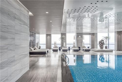 健身房及泳池皆以大面积落地窗合围,极尽开阔之能事。运动间隙临窗远眺,能使胸中万斛愁尘,一时化为乌有。