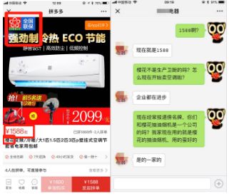 南京市民王先生最近遇到了窝心事:因为刚买了一套新房,7月份装修完成,正准备到大商场购买家电,刚好看到朋友圈里有人在发拼多多的空调拼团,于是就点网页进来看了一下,发现这里的电器比大卖场便宜多了,而且还发现了许多大牌。因为家里的卫厨电器都是清一色的SAKURA樱花产品,王先生就选了一款1588元的樱花空调。因为价格太便宜,王先生还特意咨询了一下平台上樱花空调某商家的客服,客服笃定地向王先生保证,和樱花吸油烟机是一个公司的。