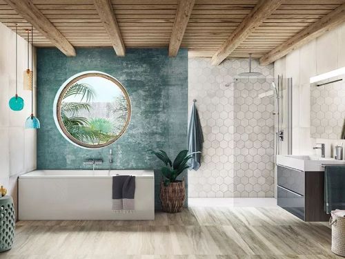 如果想使浴室更充满私人定制感,你可以选择在墙壁和地板上铺设瓷砖并搭配各种家居设备来彰显自己的个性。