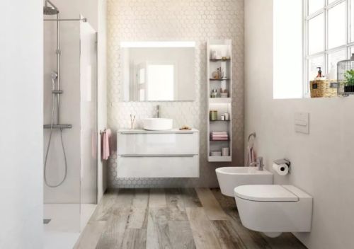 如果采用淋浴盆,除了传统的玻璃瓷淋浴盆之外, Roca乐家创新的Stonex®材料制成的防滑淋浴盆,具有精致的表面纹理,可以根据实际的淋浴区域进行定制切割。