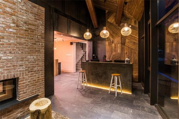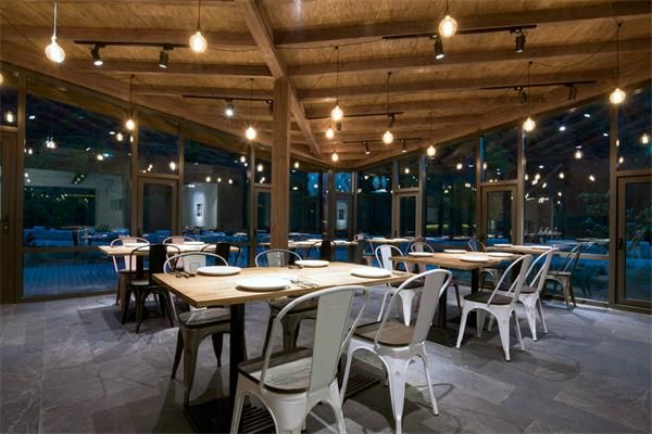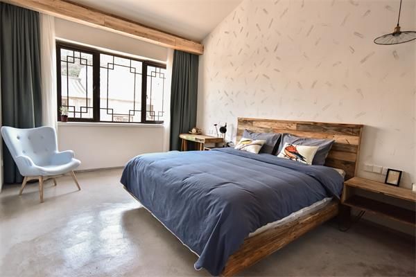 酒店在设计的各个细节上,无一不传递健康、自然的理念,选取百年榆木、天然石材、砖,与建筑中最朴素的材料混凝土完美搭配,同时选用环保乳胶等材料,从乡村中找寻最常见的用材,利用设计师的手法演绎出不平常的空间美学。