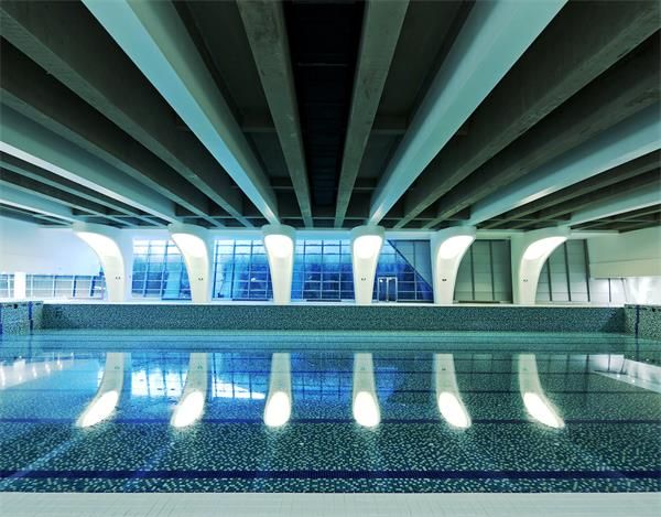 本项目的功能空间包括体育场馆、体育配套用房、中央庭院、公园绿地和停车场等,“折叠”运用在各个空间的联系中。