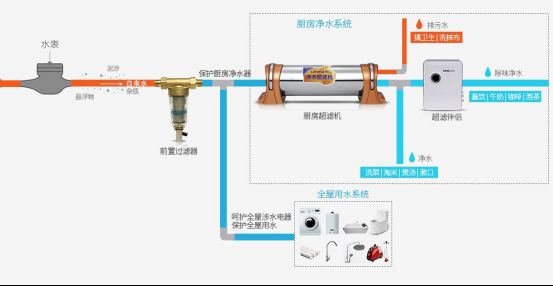 从粗滤到超滤,从传统净水器到全屋净水器……如今,市面上的净水器已可以根据用户的不同用水需求,进行科学合理的搭配,实现家庭饮水、厨房用水、洗漱、沐浴及洗衣等生活饮用水的全方位水净化。