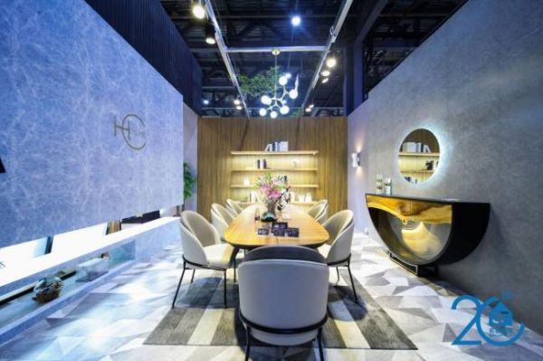 张恒:我的设计理念是在现代的手法当中穿插轻奢的元素。其实,设计空间与产品搭配有自己的逻辑关系,我们把整体的逻辑关系贯穿到项目中,融合HC home的风格,给参展的观众带来好的体验感。在凸显产品过程中,我们还专门为其做了特色的金箔点缀以及水晶封层设计,造型独特优雅,凸显家具质感的同时又不会过于奢华浮夸。