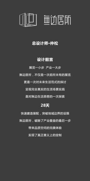 这是一次前所未有的展览形式,28天建造一座真实可居所的可移动居所,结合建筑工业、室内设计、软装设计、景观设计。这一次,不仅仅是行业的家居单品展览,而是一次上下游行业探索整合,呈现出一次建筑实践成果,一场全新的定制未来生活展览。