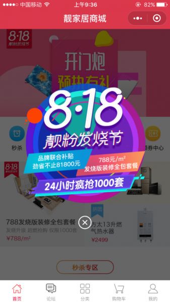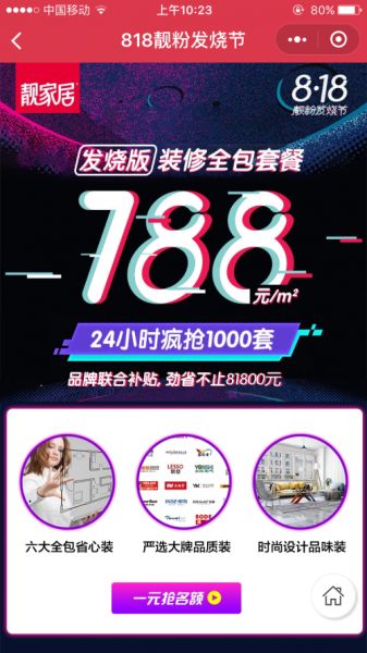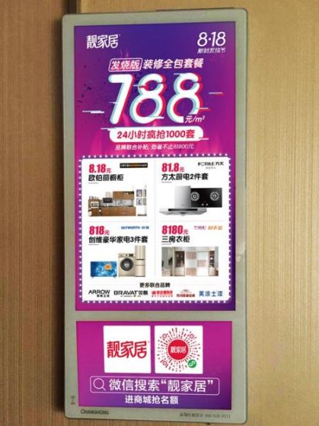 眼睛穿过人从众之间的缝隙,小编看到墙上的电梯广告,优雅地舒了一口气——不是虐狗节,而是大家都有机会抢到豪礼的818靓粉发烧节。海报上有优惠信息和小程序二维码,所以大家是在扫码进“靓家居商城”预约抢购家装福利呢!