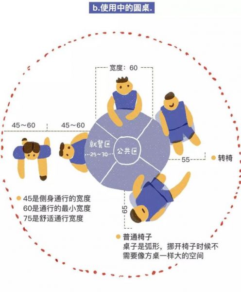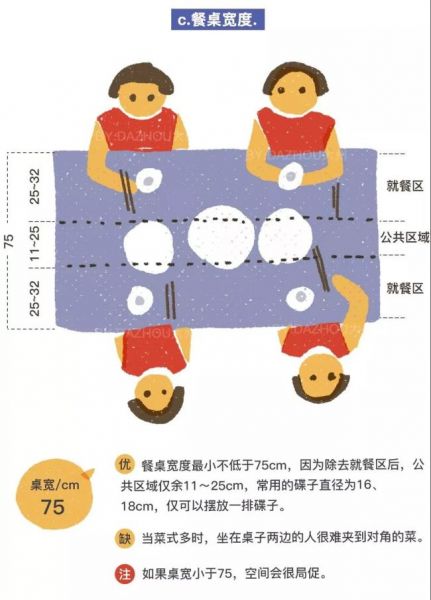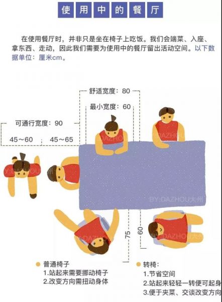 住友@大州DAZHOU 用暖萌漫画告诉你,餐厅家具的理想尺寸应该是这样的。