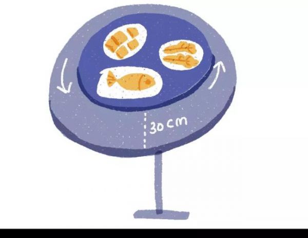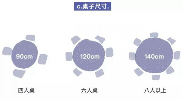 140cm建议加个转盘,就不需要站起来夹菜啦。因为转盘转动容易碰到就餐区的碗碟,所以就餐区最好留出30cm。