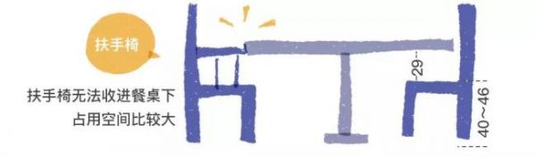 扶手椅虽然很舒服,但确是小餐厅杀手,平时不用时收不进桌子下,会占用走到空间,如果是迷你餐厅,一定要计算清楚尺寸再选哦。
