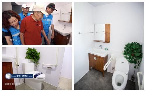 在改造后的卫浴空间,老人如厕难题首先被恒洁的节水坐便器扫除。不止如此,坐便器旁边还贴心加装了扶手供老人借力,可以调节高低的座椅,则让老人可以更舒适。事实上,这款节水马桶是由1260℃高温烧制而出,釉面光滑不黏污。由于科学的管道设计,这款马桶还具备了不返流、不溅水、冲力强等优点。裙包管设计和微晶抗污釉面技术,则让它的清洁打理更加容易。难怪这款恒洁马桶进入老人和志愿者们的眼帘时,大家都禁不住欢喜。